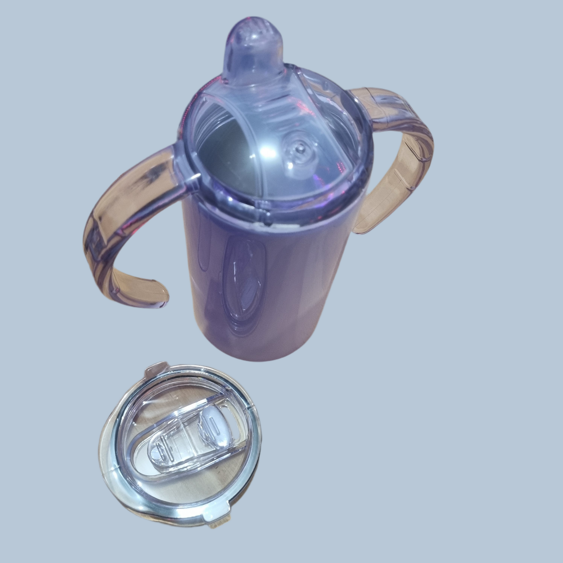 350ml Baby & Toddler Sippy Tumbler - This item is a dual lid Sippy Tumbler for babies/toddlers aged 6m+. Inside is a suction piece to control the flow of liquid for the little one, this can be removed for cleaning or removed if no longer need flow control .Safe and Sound. Once they are old enough to put aside the sippy lid they can move on to using the screw on tumbler lid. This item comes with a plastic straw.